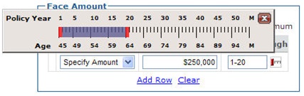 Change the ending year or age by selecting the red bar on the right side of the slider and dragging it to the correct end year or age for the schedule row.
