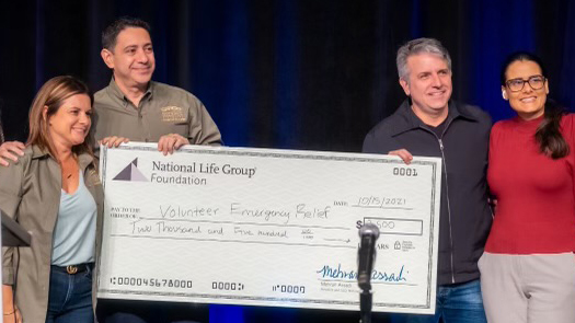 Montpelier, VT (October 15, 2021) - Volunteer Emergency Relief, a nonprofit whose mission is to do good in times of major need by enabling service and volunteer organizations to act during disasters was awarded a $2500 donation in honor of National Life Group agents Frederico Martins and Gustavo Couto, co-founders of VER.